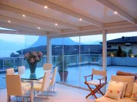 • Möglichkeit zur Integration von Glasschiebeelementen und windfesten Sonnenschutzvorrichtungen