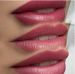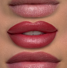 Ombre-Lippen ist eine beliebte Technik der Lippenpigmentierung, bei der weiche Farbverläufe entstehen – von einem dunkleren Ton am Rand hin zu einem helleren Ton im Lippeninneren.