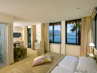 Die Position des Hotels ist in leicht erhöhter Lage über dem See und bietet einen atemberaubenden Panorama-Blick auf die Brissago-Inseln. Das Boutique Hotel ist seit 35 Jahren im Besitz und Leitung der Familie Krähenmann und zählt mit seinen 4* zu den kleinsten der Schweiz.