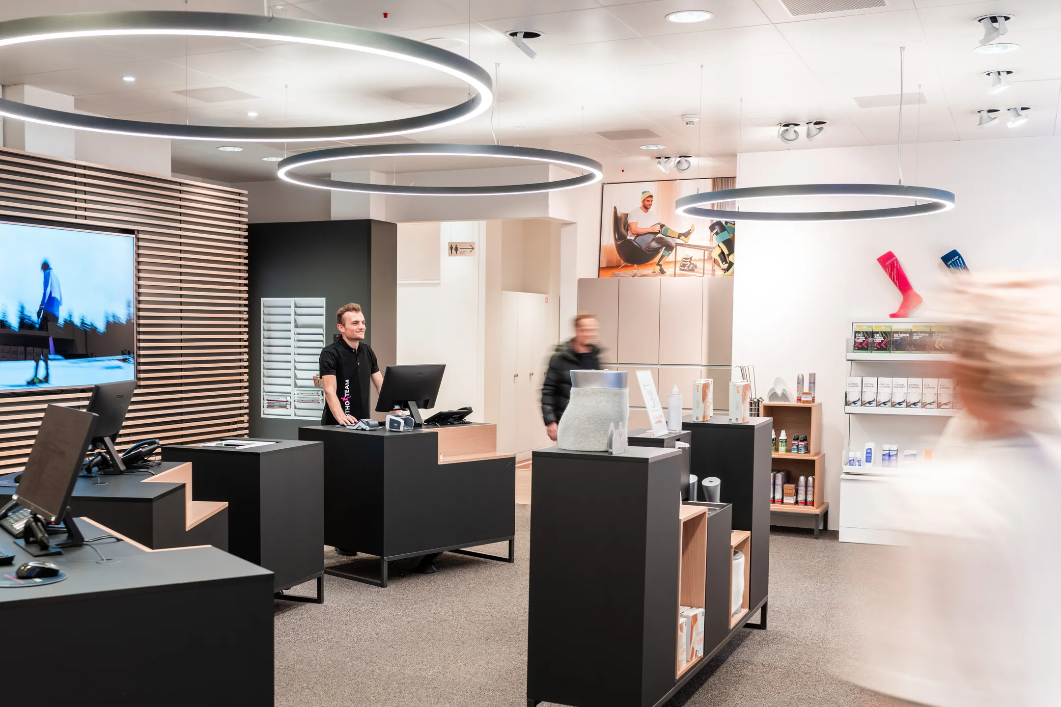 Specialists from all areas of orthopedics, movement science, and rehabilitation technology work at our location in Bern. This means that we can offer you the entire spectrum of services, from corsets and insoles to wheelchairs.