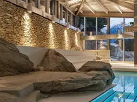 In the saunas, infusions with special aromas take place daily, which are announced on our info screen at the guest center and by announcements. The aromas also change periodically in the steam saunas. To cool off, there is sheltered access to the outdoors on the upper floor, where sun loungers and a cold water pool provide refreshing relaxation.An additional highlight is the famous grotto pool in the rock with its 40-42 degree water. For the more daring, a short dip in the adjacent cold water grotto is also worthwhile.