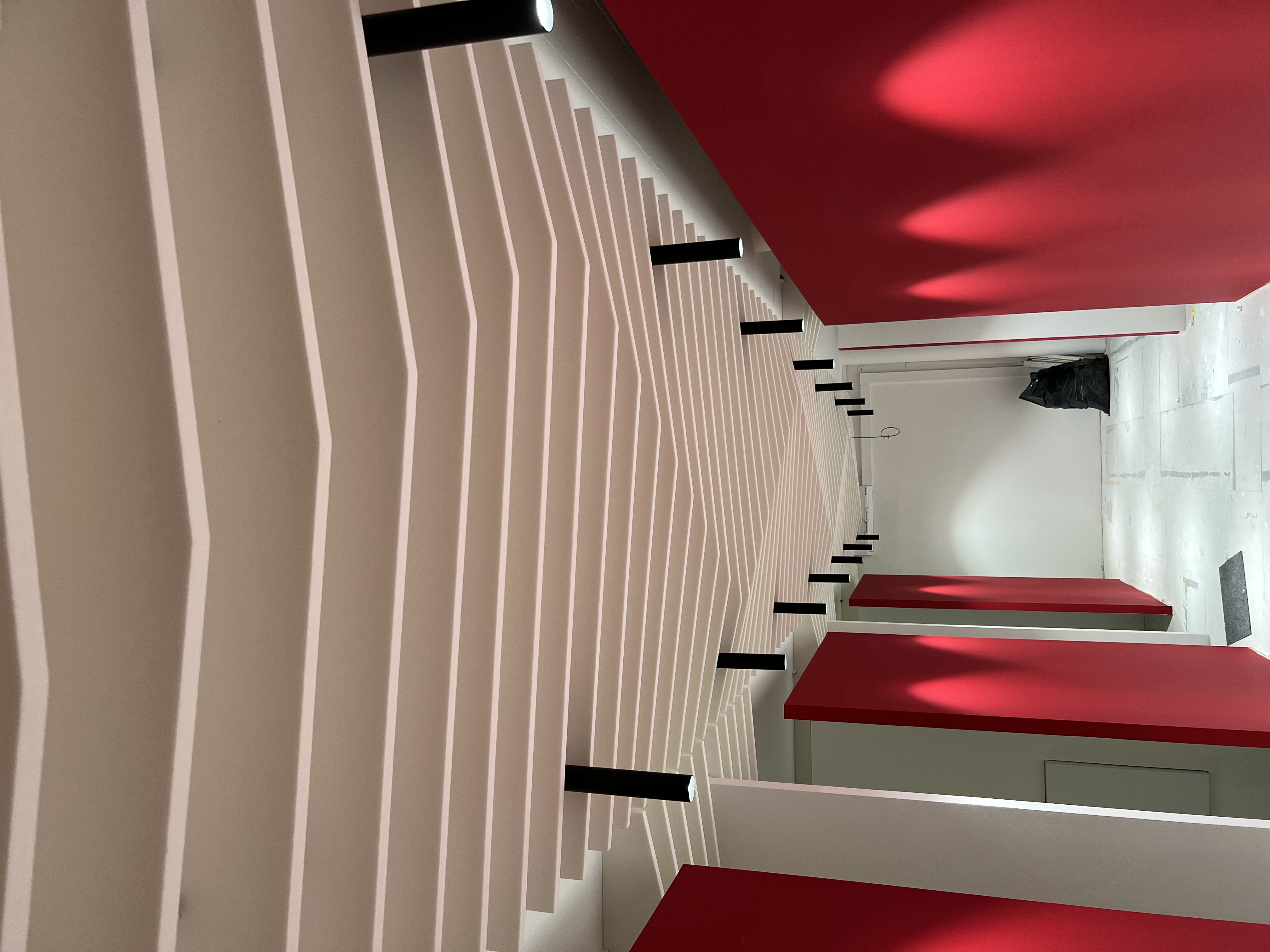 Dans le cadre de la modernisation du centre biométrique de Lausanne, nous avons réalisé un faux-plafond acoustique avec des baffles acoustiques. Ces dernières atténuent le bruit dans des environnements où la concentration et la confidentialité sont essentielles, garantissant un cadre plus calme, fonctionnel et agréable pour les utilisateurs comme pour les collaborateurs.