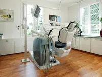 In all five treatment rooms, Swiss and German-made installations, furniture, and treatment units ensure maximum treatment comfort and safety. Swiss technology is also at work behind the scenes: oil-free compressed air and osmotically decalcified water for the entire dental practice are produced using Swiss precision technology. And the electricity for all practice work is generated by hydroelectric and solar power plants.