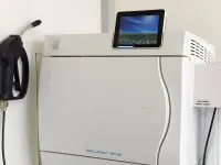 The facility has two operating rooms, each distinguished by a color code, green and blue, which revolve around the sterilization room, the operational heart of the practice, where all instruments follow a rigorous procedure that eliminates any risk of infection being transmitted between patients.