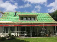 Roof renovation from a single source. We are a small family business. The roofing company in Niederdorf has been in existence since 1956. We carry out roof extensions, skylights, and plumbing work (lightning protection), insulation of screed and attics, insulation and cladding of facades, tile and Eternit roofing, as well as our own scaffolding.