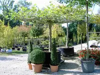 Avenue trees, ornamental trees, deciduous trees, shade trees, house trees, espalier trees, fruit trees, flowering trees, roof-shaped trees, umbrella trees, topiary trees, hedge plants, berries, garden plants, conifers, deciduous trees