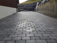 We offer rough grading and earthworks, paths and seating areas made of concrete and natural stone, concrete slab paving in various colors, marl paving, walls made of natural or concrete stone, bioengineering structures, wooden sleeper walls made of wood from the region, pond and biotope gardens, fruit and berry gardens, planting of shrub borders and screening hedges, laying of lawns or meadows for playing or admiring, playgrounds with various play equipment, pergolas, wooden or metal fences.