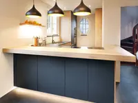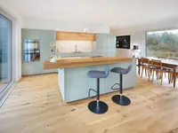 At Schmutz Carpentry, the manufacture of kitchen furniture is our main activity; around 50% of all orders relate to the kitchen area. The kitchen furniture is manufactured from start to finish in our carpentry workshop. Thanks to our many years of experience, we can provide you with expert advice and find the optimal solution for your specific requirements. Our kitchens are unique.