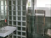 Cremonesi Glas has decades of experience in installing glass blocks. The glass block allows the use of natural sunlight indoors without any loss of thermal insulation. Interesting architectural possibilities include facades, stairwells, partition walls, door entrances and shower cubicles. A wide variety of applications can be designed using decor, color and functions. State-of-the-art installation methods guarantee technical advantages as well as efficiency in the construction process and scheduling.