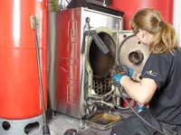 Of course, we clean your wood-fired heating system (logs, pellets, or wood chips) twice a year as before, thus continuing to ensure optimal functionality and safety! At the customer's request, this can also be done once a year.