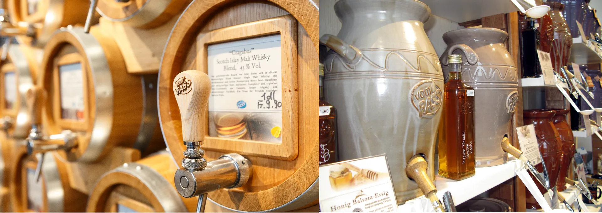 We would like to tempt you into the fascinating world of liquid delicacies! You can choose the right bottle and have it filled with oil, vinegar, or spirits. Bottle empty? Then bring it back to be refilled and do your bit for the environment!